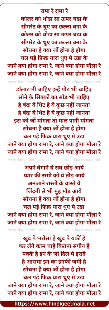 Lyrics of Rama Re (Remix) - रामा रे रामा रे