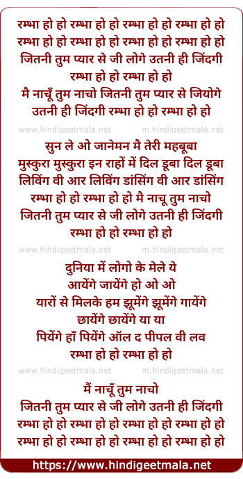 Lyrics of Rambha Ho Ho Main Naachu Tum Naacho - रम्भा हो हो मै नाचूँ तुम नाचो
