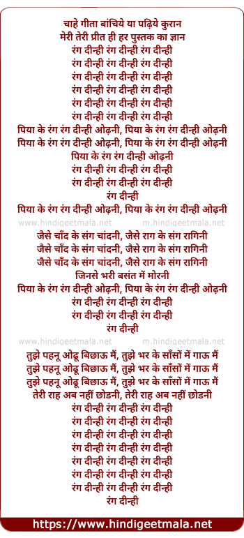 Lyrics of Rang Dinhee Rang Dinhee - रंग दीन्ही रंग दीन्ही