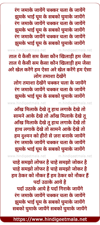 Lyrics of Rang Jamake Jayenge Chakkar Chala Ke Jayenge - रंग जमाके जायेंगे चक्कर चला के जायेंगे