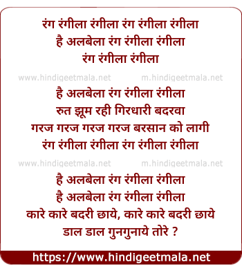 Lyrics of Rang Rangeela - रंग रंगीला रंगीला रंग रंगीला रंगीला