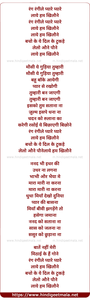Lyrics of Rang Rangeele Pyare Pyare Laaye - रंग रंगीले प्यारे प्यारे लाये