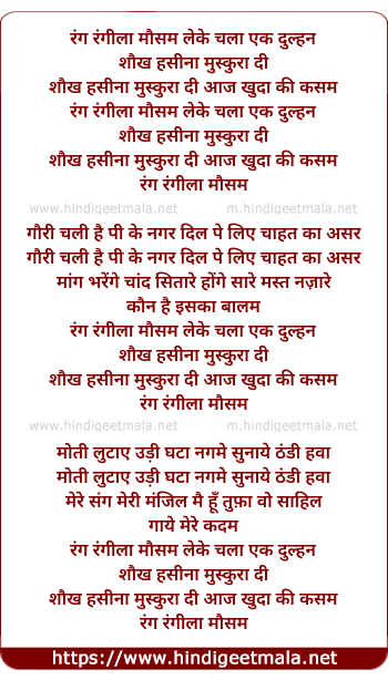 Lyrics of Rang Rangila Mausam Leke Chala Ek Dulhan - रंग रंगीला मौसम लेके चला एक दुल्हन