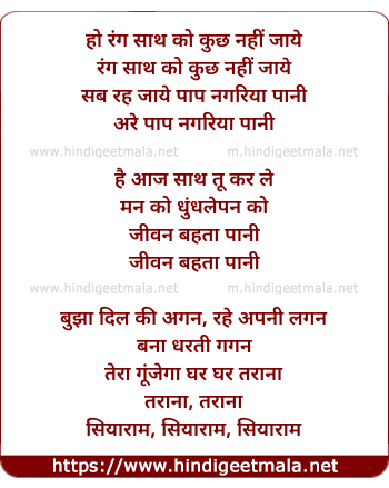 Lyrics of Rang Sath Ko Kuchh Nahee Jaaye - रंग साथ को कुछ नहीं जाये