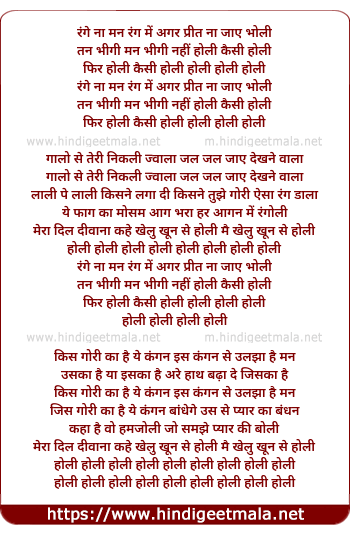 Lyrics of Range Na Mann Rang Me Agar - रंगे ना मन रंग में अगर
