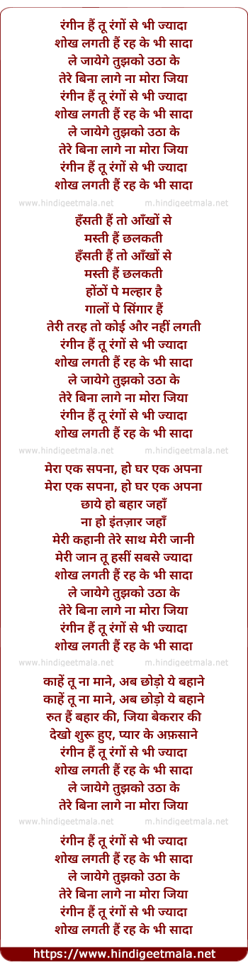 rangin hai tu rangon se bhi zyada