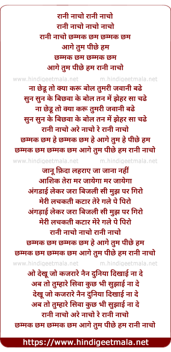 Lyrics of Rani Nacho Chamak Cham - रानी नाचो रानी नाचो