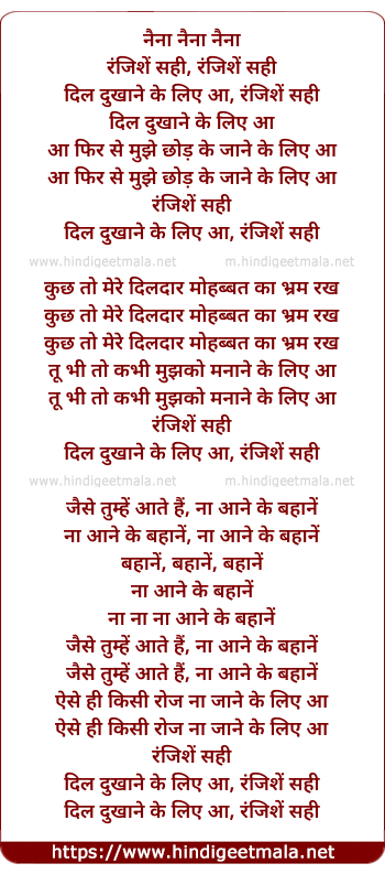 Lyrics of Ranjish Hai Sahi - नैना नैना नैना