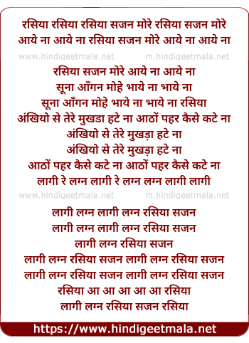 Lyrics of Rasiyan Sajan More - रसिया रसिया रसिया सजन मोरे रसिया सजन मोरे