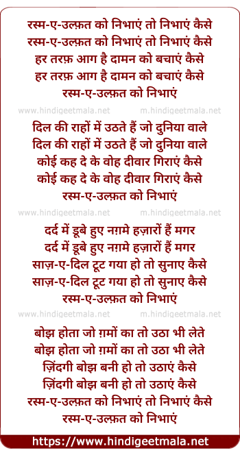 Rasm-E-Ulfat Ko Nibhaaen To Nibhaaen Kaise - रस्म-ए-उल्फ़त को निभाएं तो निभाएं कैसे