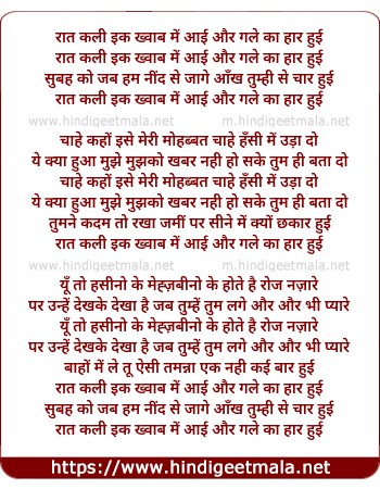 Lyrics of Rat Kalee Ek Khwab Me Aayee - रात कली इक ख्वाब में आई