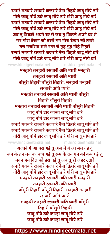ratanare matware rasware kajrare naina tihare jadu mohpe dare