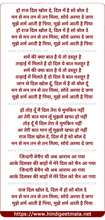 Lyrics of Raz Dil Khol De - राज दिल खोल दे