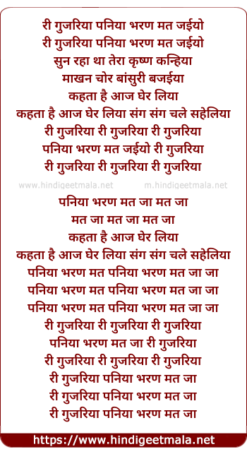 Lyrics of Ree Gujaria - री गुजरिया पनिया भरण मत जईयो