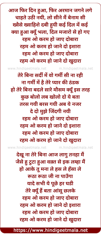 Lyrics of Reham O Karam Ho Jaane Do Khudara - रहम ओ करम हो जाने दो खुदारा