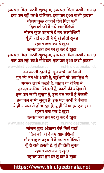 Lyrics of Rehmat Zara Kar De Khuda - रहमत जरा कर दे खुदा