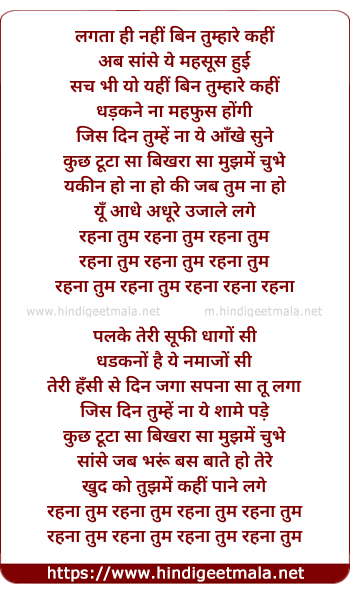 Lyrics of Rehnaa Tum (Reprise) - रहना तुम
