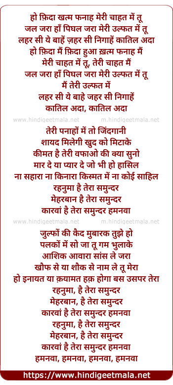 Lyrics of Rehnuma Hai Tera Samundar - रहनुमा है तेरा समुन्दर