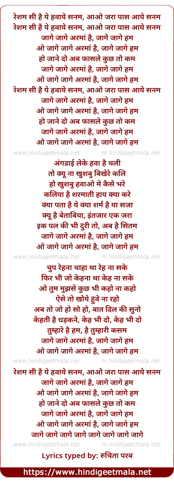 Lyrics of Resham Si Hain Ye, Jaage Jaage Aramaan Hain - रेशम सी है ये, जागे जागे अरमान है