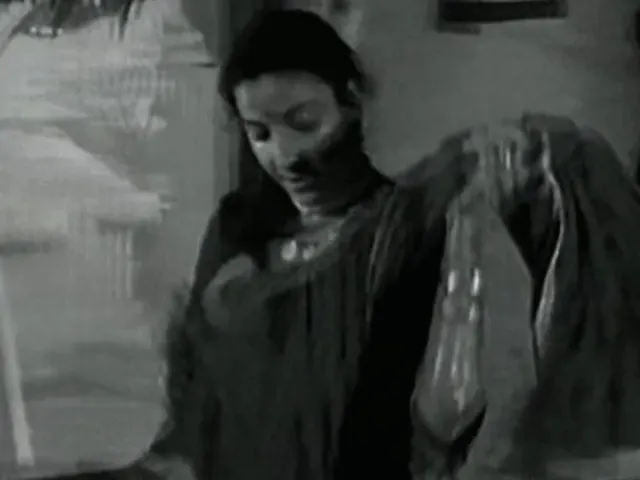 Film: PARDESI - 1957. Cast: Nargis Dutt, Balraj Sahni, Jairaj, Padmini,