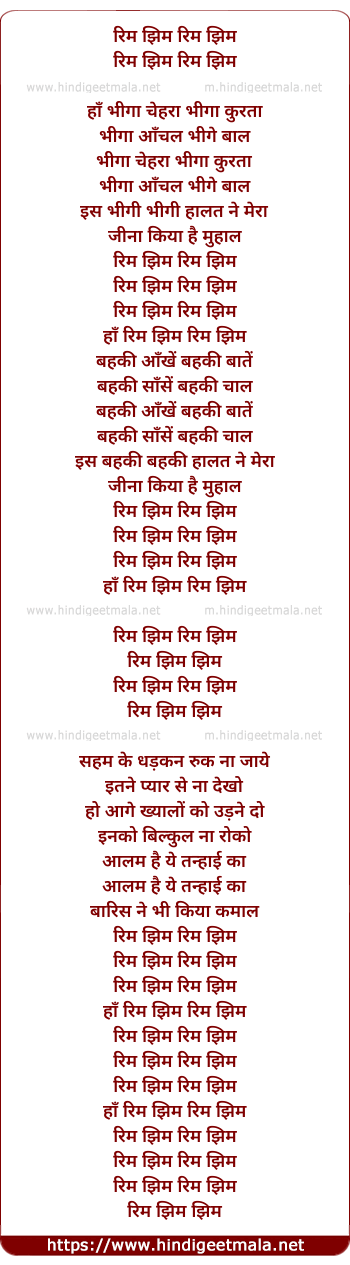 Poetic Translation - Lyrics of Rim Jhim Rim Jhim (Military Raaj) - रिम झिम रिम झिम