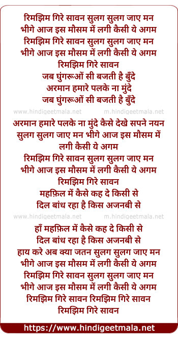 Lyrics of Rimjhim Gire Saawan - रिमझिम गिरे सावन