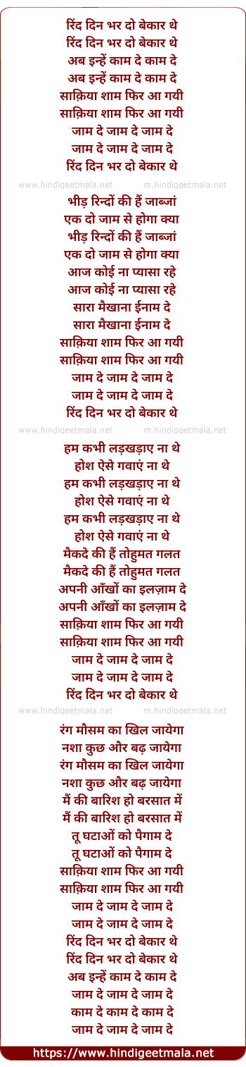 Lyrics of Rind Din Bhar To - रिंद दिन भर दो बेकार थे