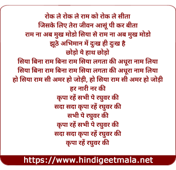 Lyrics of Rok Le Ram Ko Rok Le Sita, Ram Naa Ab Mukh Modo Siya Se - रोक ले राम को रोक ले सीता, राम ना अब मुख मोड़ो सिया से