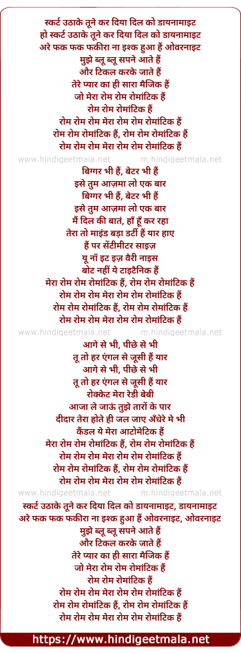 Lyrics of Rom Rom Romantic - स्कर्ट उठाके तूने कर दिया दिल को डायनामाइट