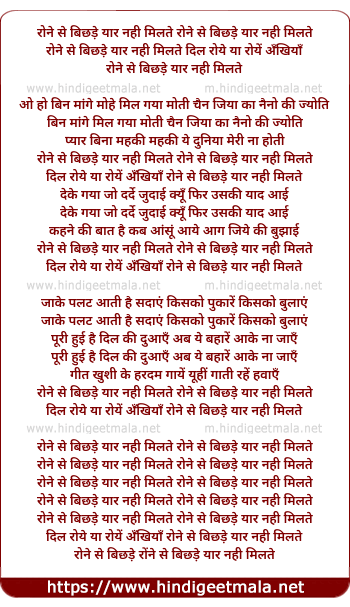 Lyrics of Rone Se Bichhde Yaar Nahi Milte - रोने से बिछड़े यार नही मिलते