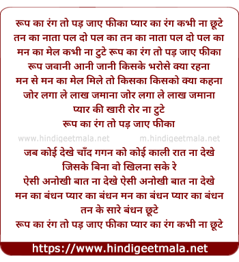 Lyrics of Roop Ka Rang To Pad Jaye Phika - रूप का रंग तो पड़ जाए फीका