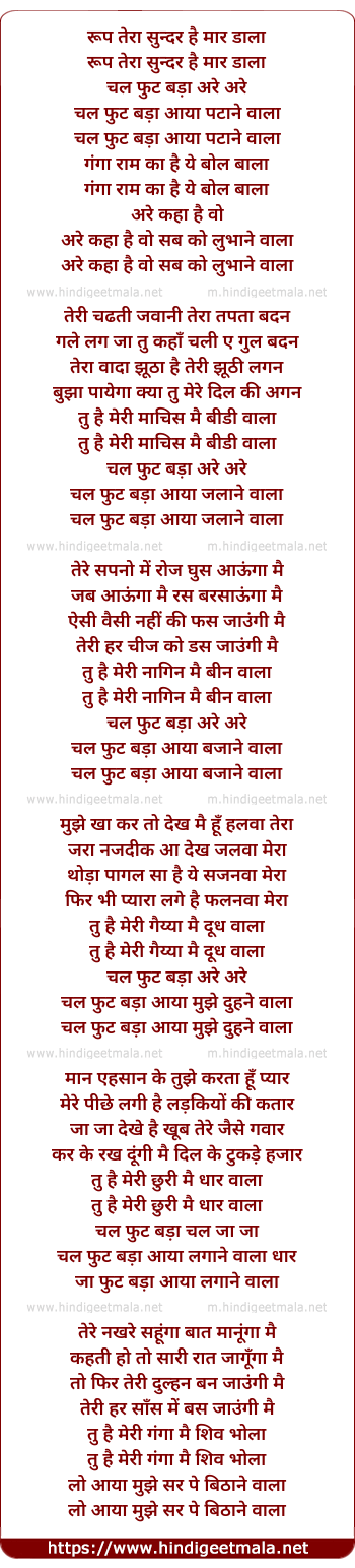 Lyrics of Roop Tera Sundar Hai Mar Dala - रूप तेरा सुन्दर है मार डाला