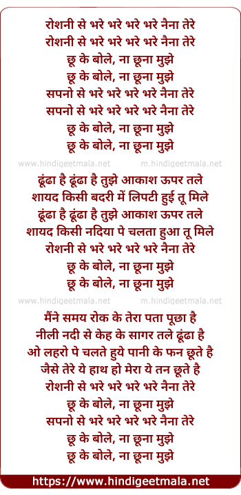 Lyrics of Roshani Se Bhare Bhare Nainaa Tere - रोशनी से भरे भरे नैना तेरे