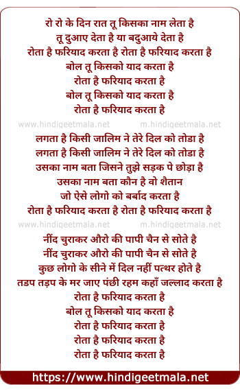 Lyrics of Rota Hai Fariyaad Karta - रोता है फरियाद करता है