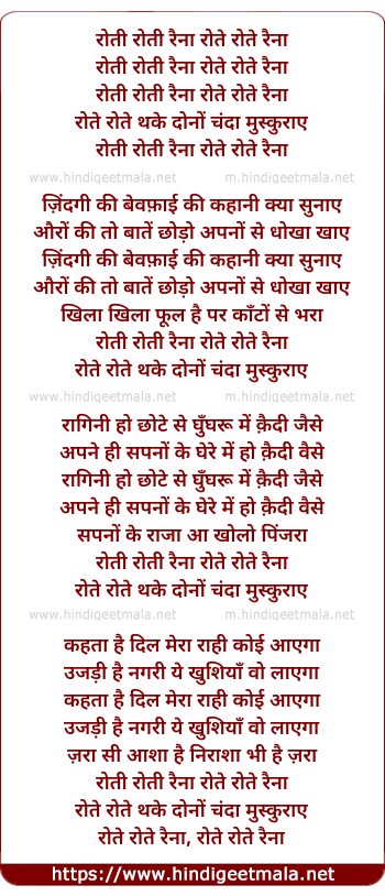 Lyrics of Roti Roti Rainaa Rote Rote Nainaa - रोती रोती रैना रोते रोते रैना