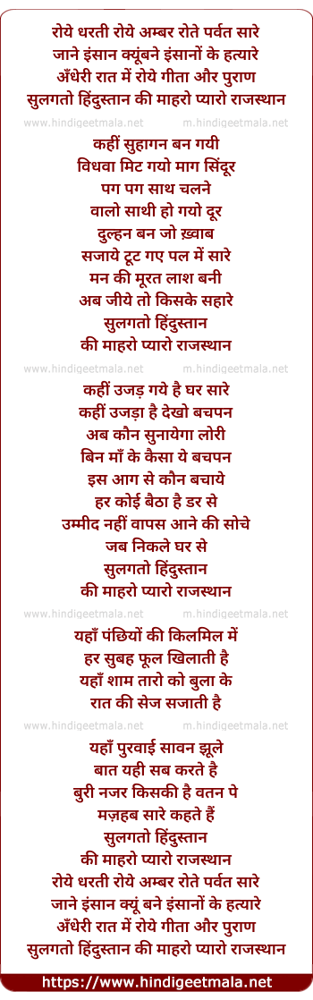 sulagto hindustaan ki mahro pyaro rajastaan