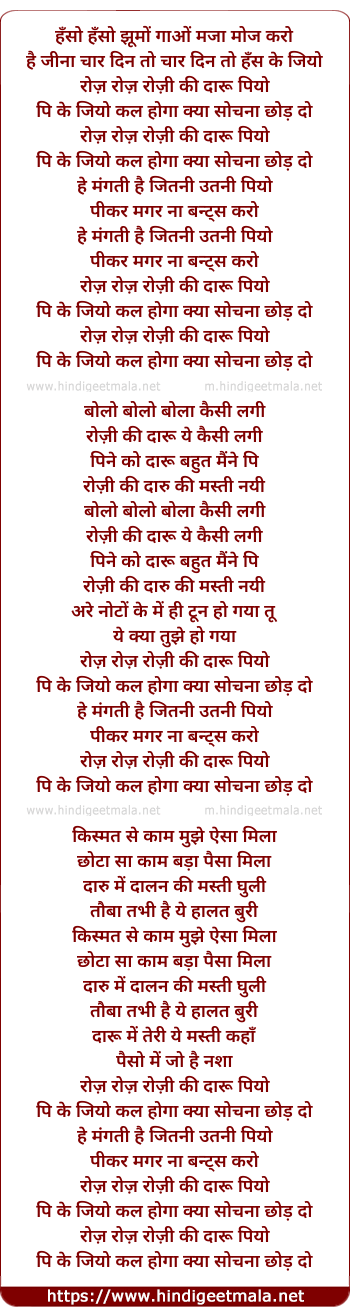 Lyrics of Roz Roz Rozi Ki Daru Piyo - रोज़ रोज़ रोज़ी की दारू पियो
