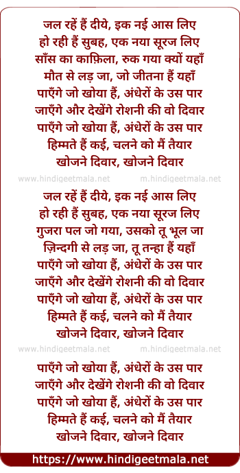Lyrics of Rozen-E-Deewaar - जल रहें हैं दीये, इक नई आस लिए