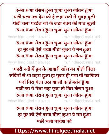 Lyrics of Ruan Ruan Roshan Huaa - रुआं रुआं रोशन हुआ