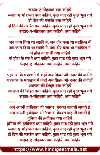 Lyrics of Rudaad E Mohabbat Kyaa Kahiye - रूदाद-ए-मोहब्बत क्या कहिये