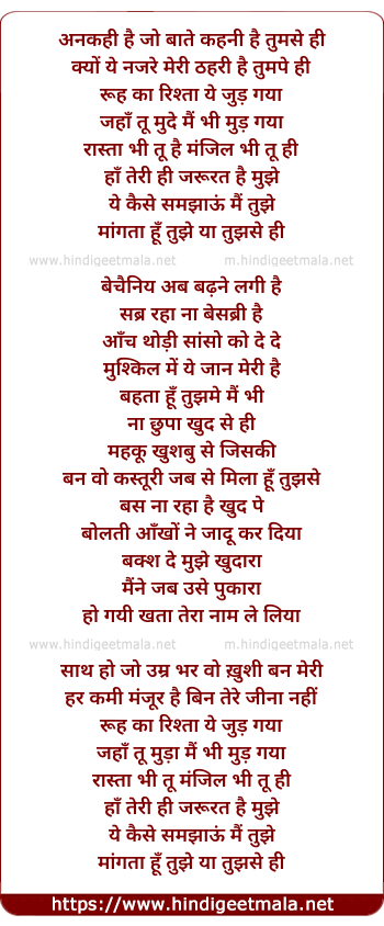 Lyrics of Ruh Kaa Rishta (Yasser Desai Version) - रूह का रिश्ता