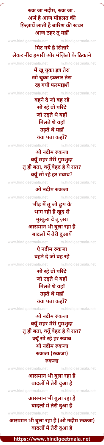 Lyrics of Ruk Ja Nadeem (Amartya Ray Version) - रुक जा नदीम