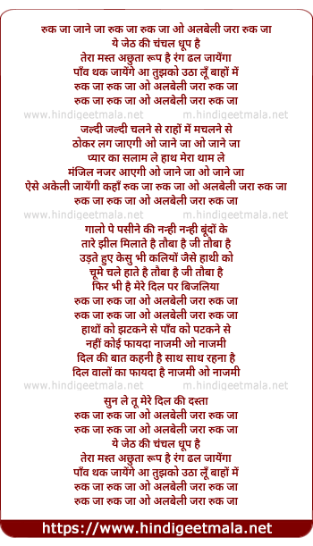 Lyrics of Ruk Jaa Ae Albeli Jara Ruk Jaa - रुक जा ऐ अलबेली रुक जा