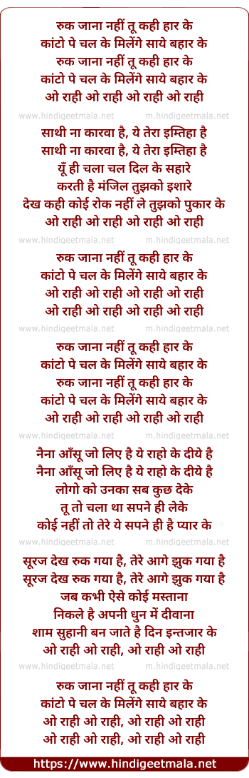 Lyrics of Ruk Jaana Nahi Tu Kahi Haar Ke (2) - रुक जाना नहीं तू कही हार के