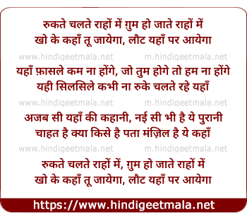 Lyrics of Rukate Chalate Raahon Men - रुकते चलते राहों में