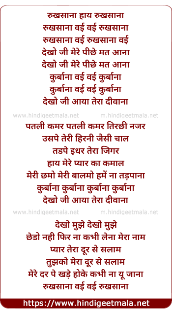 Lyrics of Rukhsana Rukhsana Dekho Ji Rukhsana - रुखसाना रुखसाना देखो जी रुखसाना
