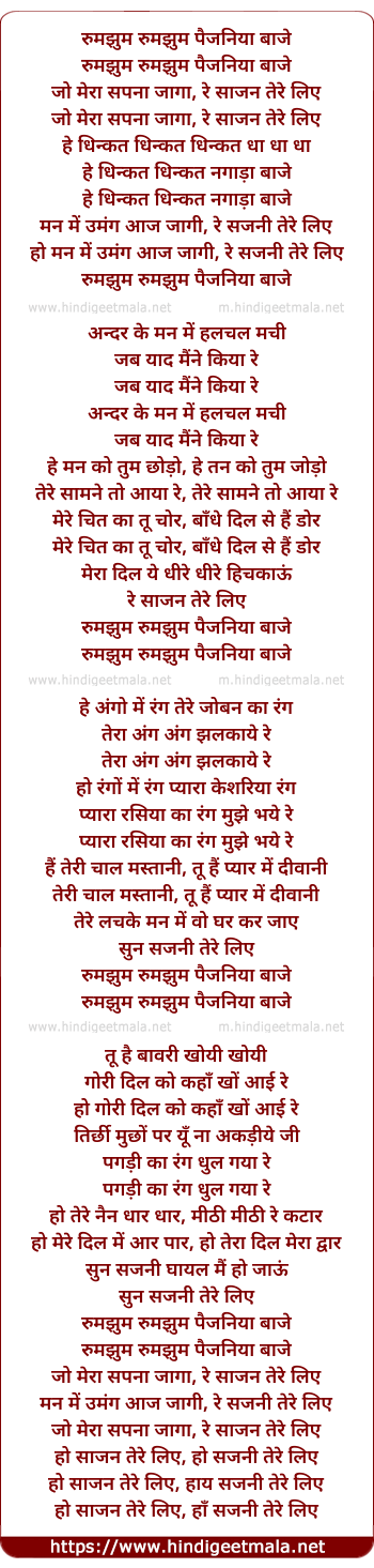 Lyrics of Rumjhum Rumjhum Paijaniya Baaje - रुमझुम रुमझुम पैजनिया बाजे