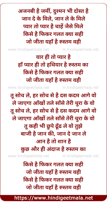 Lyrics of Rustom Vahi (Male Version) - अजनबी है जमीं, दुश्मन भी दोस्त है