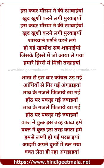 Lyrics of Ruswainya - इस कदर मौसम ने की रशवाईयां