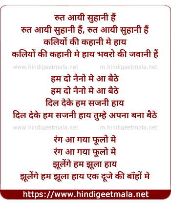 Lyrics of Rut Aayi Suhani Hai - रुत आयी सुहानी हैं